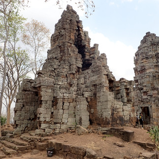 Stop five and it isn't even lunch time yet, and before we got a chance to chow down first way a visit to the Wat Banan temple. Built in the 11th century by King Udayadaityavarman II - I'm not expecting anyone to be able to pronounce that name - and is one of the most well preserved temples in the Battambang district, despite the buddhist aspects of the temple being defaced by the Khmer Rouge. To get to see the temples first we had 358 stairs to contend with and they were steep. So steep my legs were shaking and my breath came out in harsh pants only half way up, so steep that I even considered scooting back down the stairs on my bum as vertigo threatened to lock up my legs, but I persevered and finally made it to the top, besides i really shouldnt complain as Ben had to do the same trip while carrying the bag with all our stuff in.